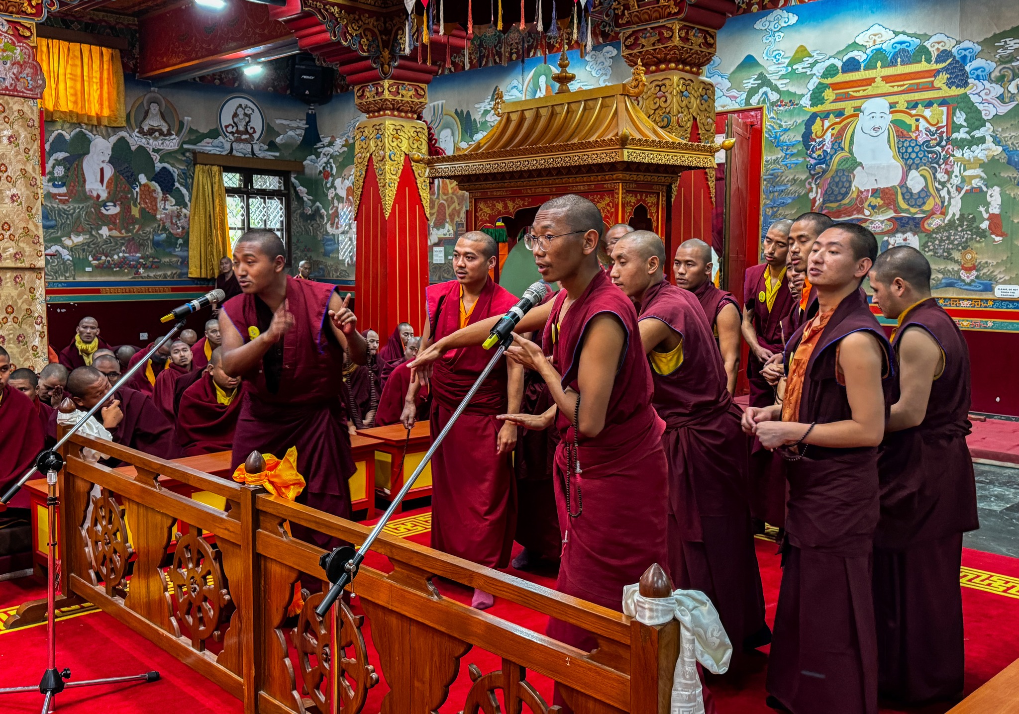 Each team comprises twelve monks. When the teams debate, they take it in turns to be the responders and the presenters. Only three monks from the team are chosen as responders, and nine monks from the team are assigned as presenters.