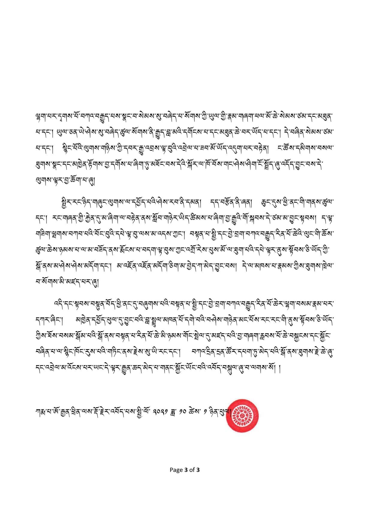 ཀརྨ་པ་ཨོ་རྒྱན་ཕྲིན་ལས་རྡོ་རྗེར་འབོད་པས་སྤྱི་ལོ་ ༢༠༢༡ ཟླ་ ༡༠ ཚེས་ ༡ ཉིན་ཕུལ།